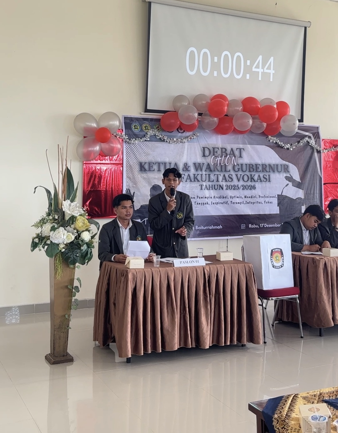 Padang — Fakultas Vokasi Universitas Baiturrahmah menyelenggarakan Debat Calon Ketua dan Wakil Ketua Badan Eksekutif Mahasiswa (BEM) Fakultas Vokasi Tahun 2025/2026 pada Rabu, 17 September 2025. Kegiatan ini dilaksanakan di